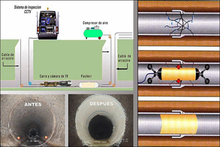 Son aparatos robotizados que, dirigidos a distancia, reparan las tuberías mediante el sellado de camisas de fibra de vidrio. Las resinas especiales para las tuberías también son utilizadas en las rehabilitaciones sin obras, así como otros elementos de cuya utilización tendrá en todo momento conocimiento el interesado.
